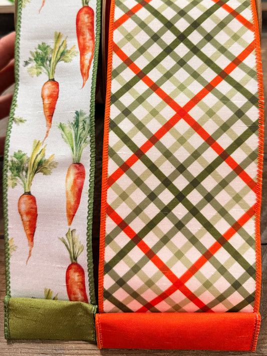 2 1/2" Wired Dupioni Ribbon | Carrots w/ Green Silk Backing | 10 Yard Roll