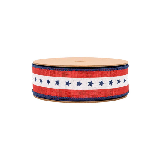1 1/2" Wired Ribbon | Natural Patriotic Blue Star | 10 Yard Spool