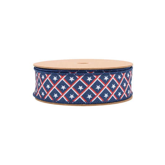 1 1/2" Wired Ribbon | Patriotic Diamond Stars/Plaid | 10 Yard Roll